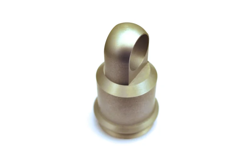 Attacco per corpo ammortizzatore ricavato dal pieno in ERGAL, realizzato con diverse caratteristiche dimensionali per consentire adattabilità alle varie tipologie di sospensioni.